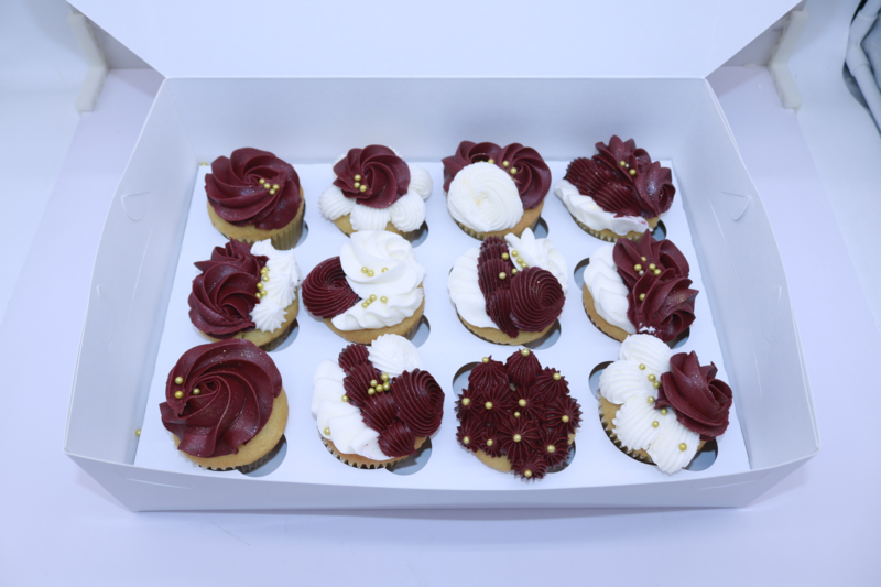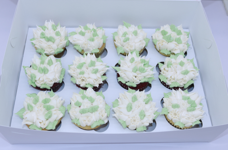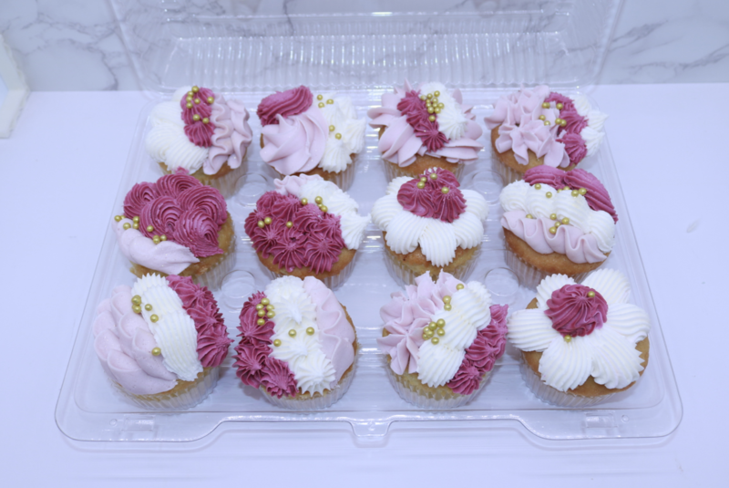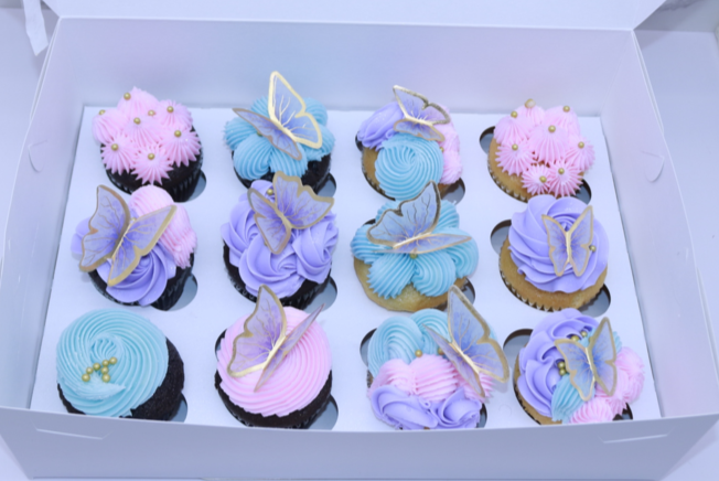 Cupcakes are sold by the dozen ranging from $42.00 - $96.00 depending on design.
