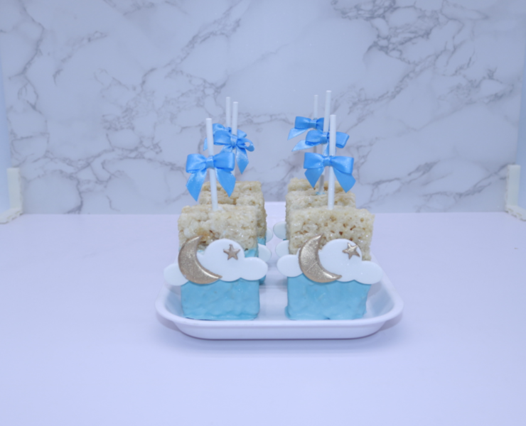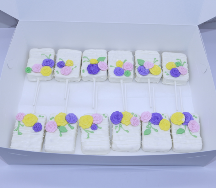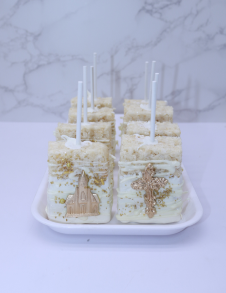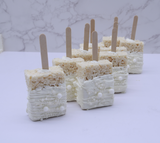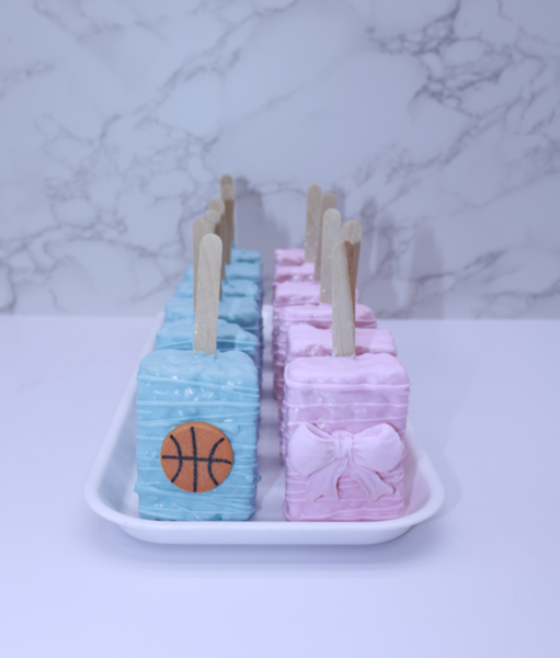 Decorated Rice Krispies are sold by the dozen, ranging from $54.00 - $96.00 per dozen.