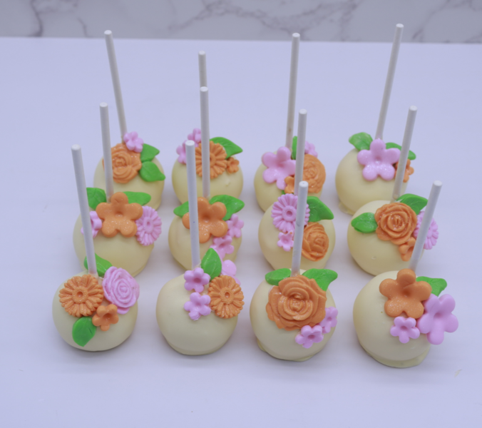 Cake pops are sold by the dozen, ranging from $54.00 - $96.00 per dozen.