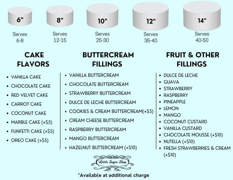 To place an order please visit our online store littlesugarshop.square.site. To place a custom order please email your request to cakes@littlesugarshop.com or text us at (516) 703-3532. We require full payment when the order is placed.